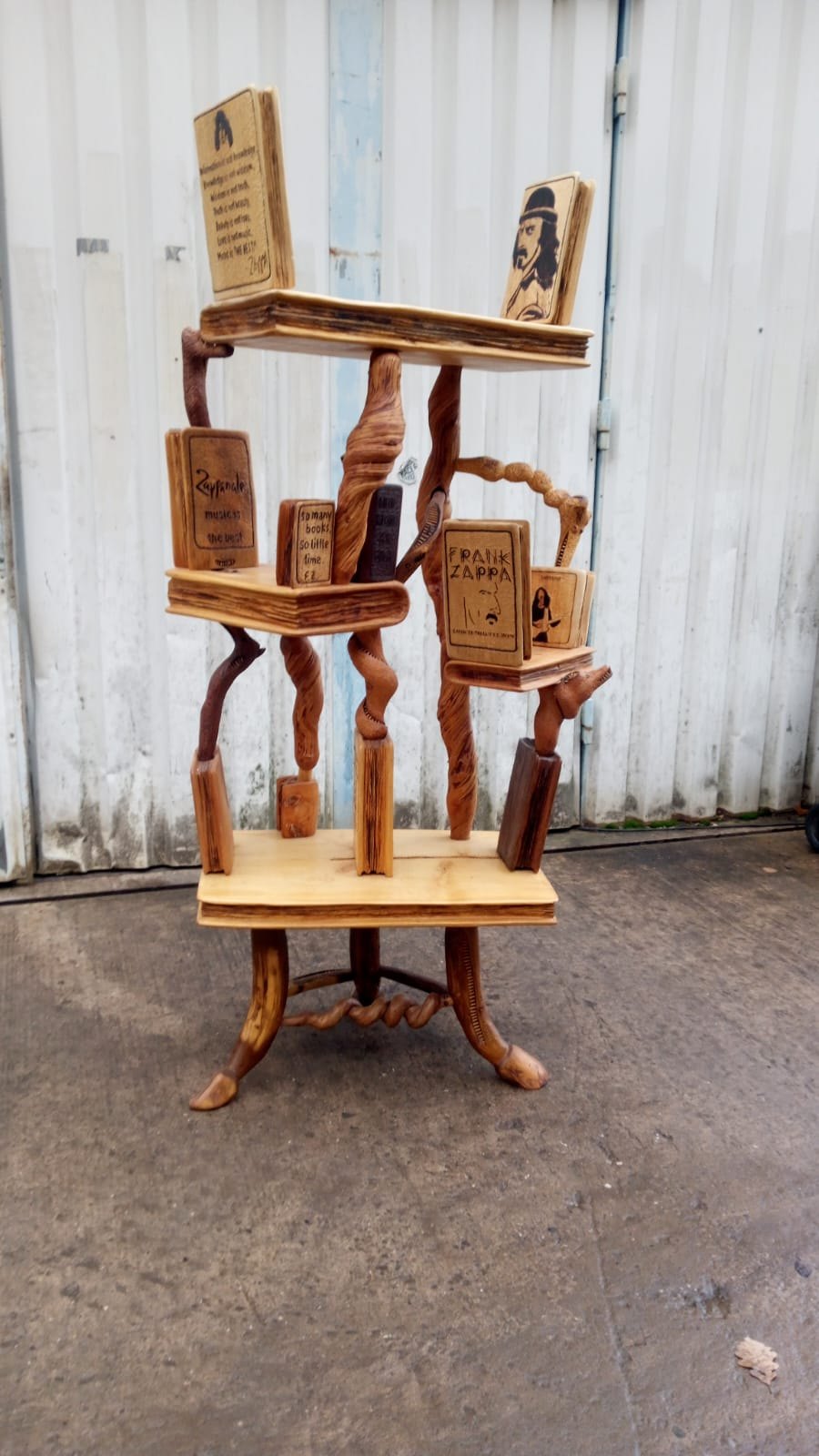 Der Wildholzwerkstatt-Stephan, den ja viele von der Zappanale kennen, hat ein besonders zappaeskes Möbelstück im Angebot. Ein Regal aus verschiedenen Hölzern, wie Eiche, Esche, Ahorn, Pappel und Robinie. Es ist 2m hoch und die beide oberen Buchstützen sind abnehmbar. Der Preis liegt bei 3.400 EUR und das Regal kann auch angeliefert werden. Interessenten melden sich bitte bei Diese E-Mail-Adresse ist vor Spambots geschützt! Zur Anzeige muss JavaScript eingeschaltet sein.