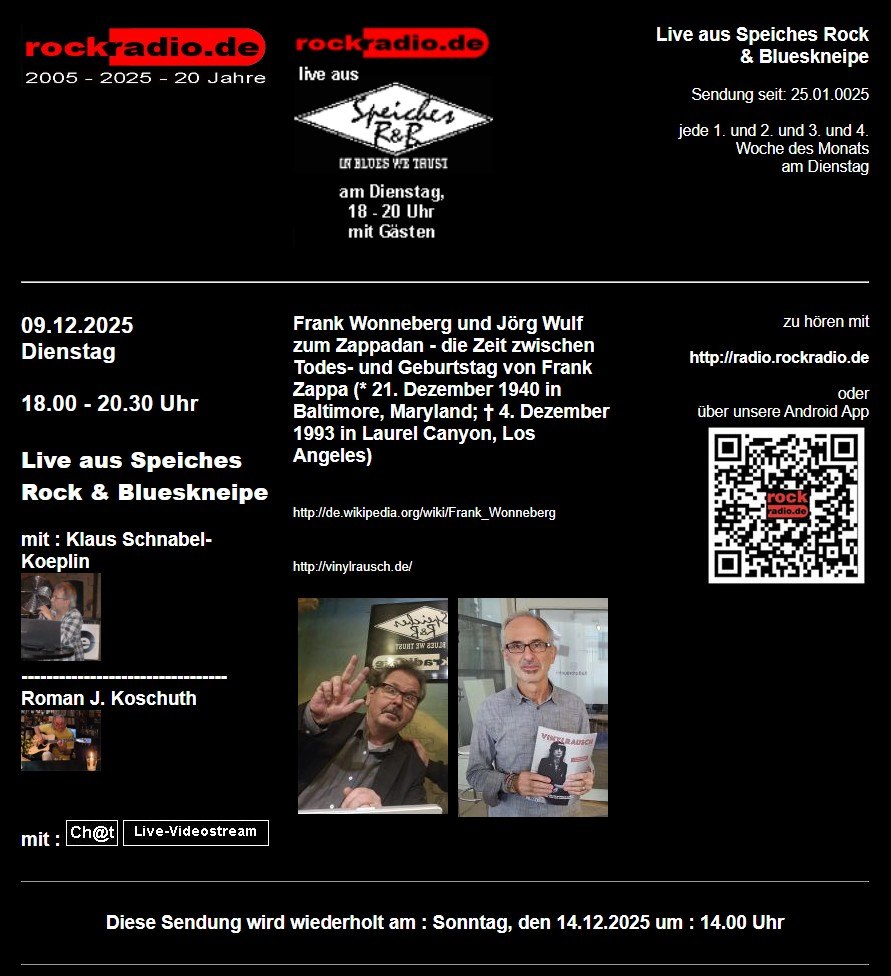 09.12.25 Live aus Speiches Rock & Blueskneipe: Frank Wonneberg und Jörg Wulf zum Zappadan